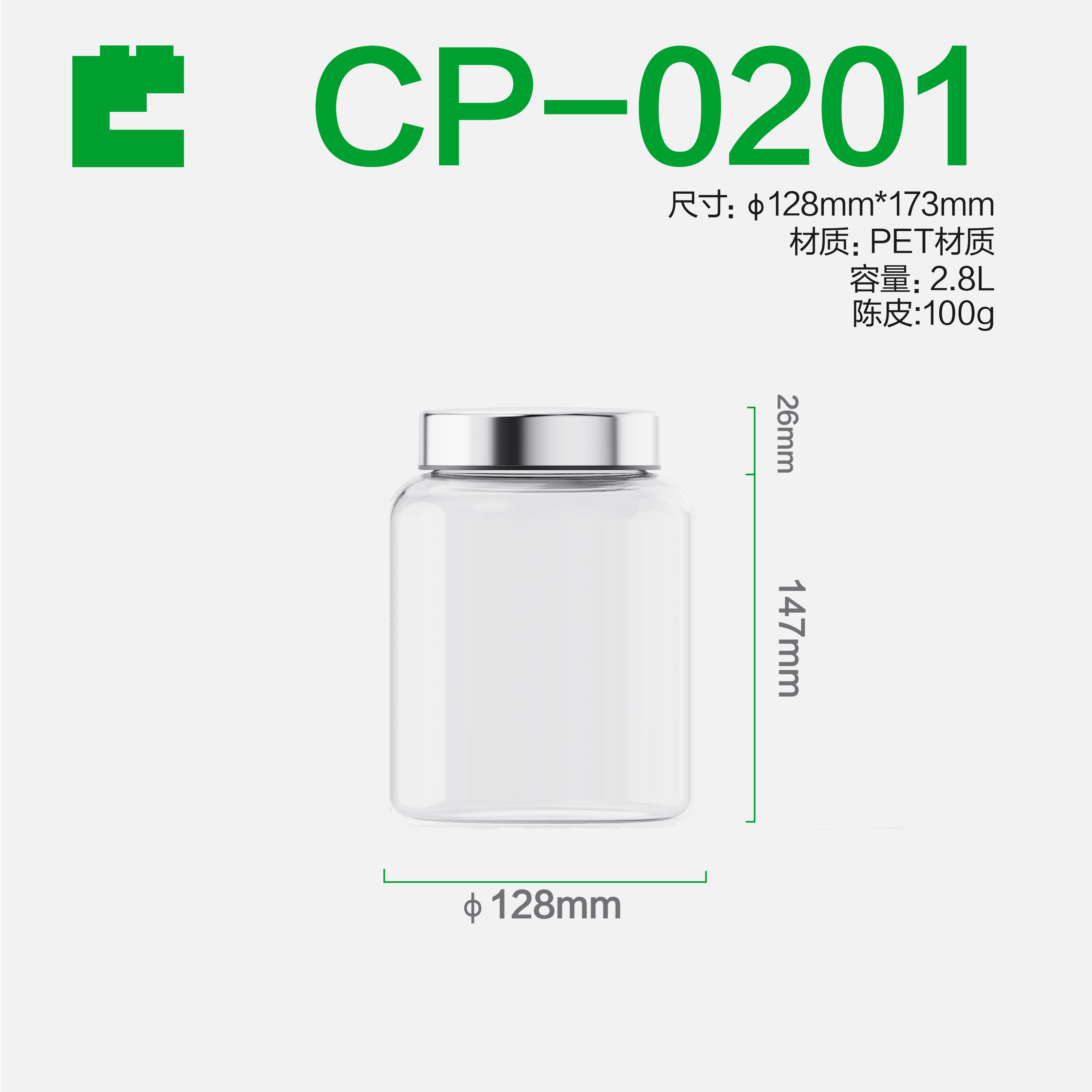| CP-0201 airtight candy bin jar | PET | Transparent | FDA Approved | 128*173mm | ECOBOX | 2.8L | Bulk merchandising solution |