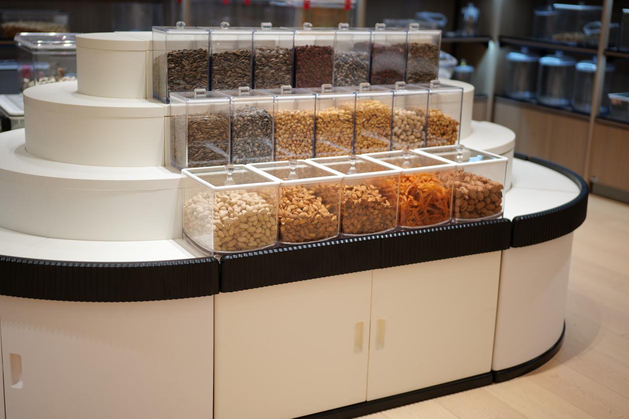 Our new display cabinets feature a clean, white and tidy design that enhances the visual appeal of any retail environment. Whether you are showcasing vibrant candies, nuts, or grains, the minimalist white finish ensures your products remain the star of the show.